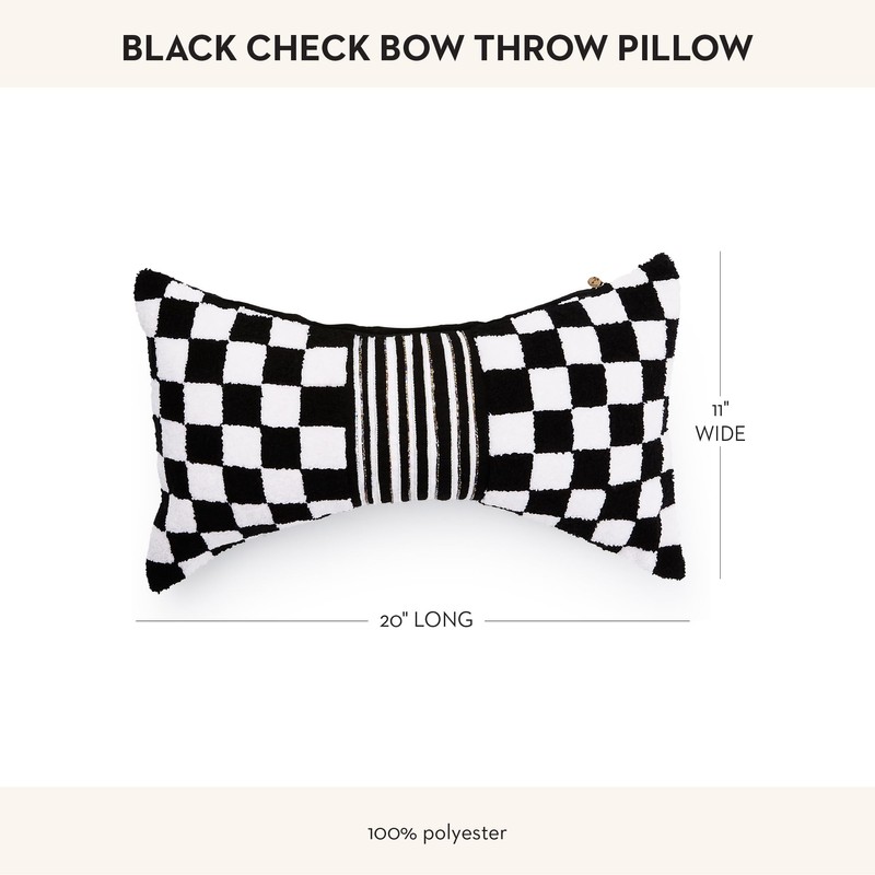 - ELEGANT DECOR PIECE: The black-and-white Black Check Bow Throw Pillow is a decorative throw pillow featuring our classic checked pattern. Use this bow-shaped pillow as a cute accent pillow or seasonal decor for any fall or winter event.