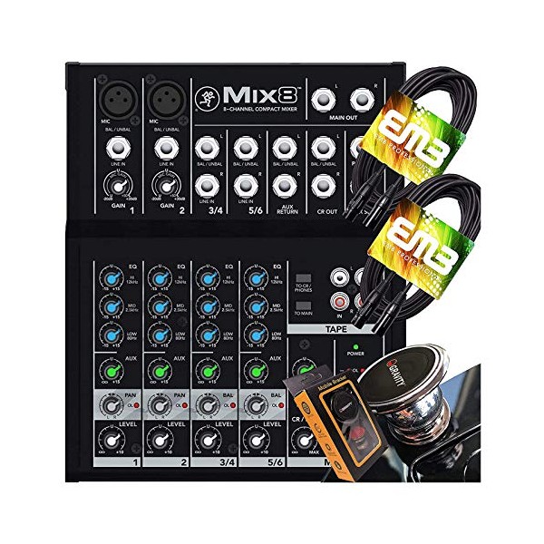 - Mackie MIX8 Mixer + EMB XLR Cable (2) + Gravity Phone Holder Bundle