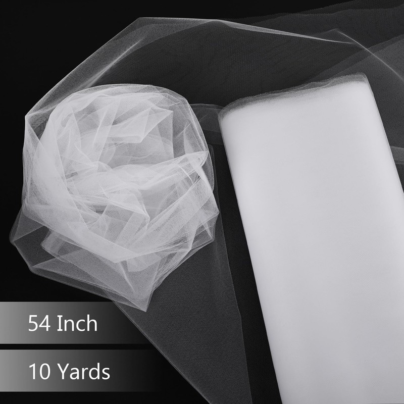 Maclemon White Tulle Tape Roll 54 Inch x 10 yards for DIY Crafts Weddings Sewing DIY Projects Gift Wrap and more - Multiple colours of tulle mesh