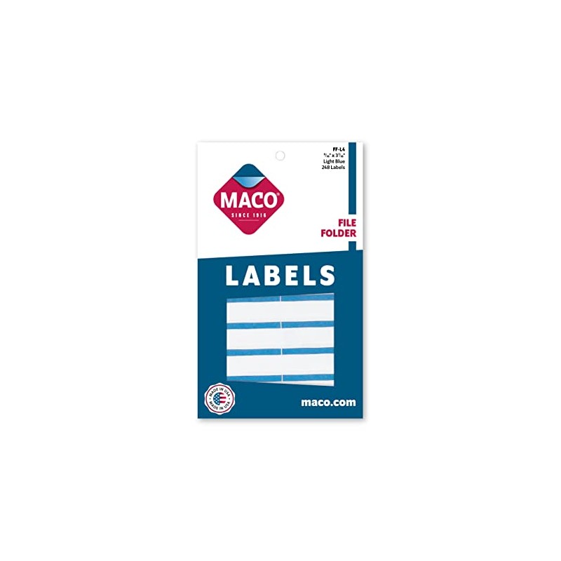 MACO Light Blue File Folder Labels, 9/16 x 3-7/16 Inches, 248 Per Box (FF-L4)