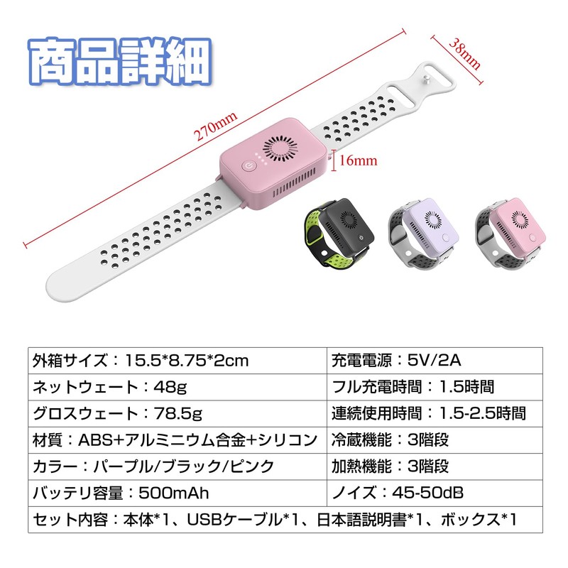 MACOLAUDER USB Wrist Fan, Semiconductor Refrigeration Heating Type, 3 Stairs for Refrigeration, Portable Fan, Wrist Cooler, Cooling Plate, Rechargeable, Work or School Commute, Lightweight, Quiet,