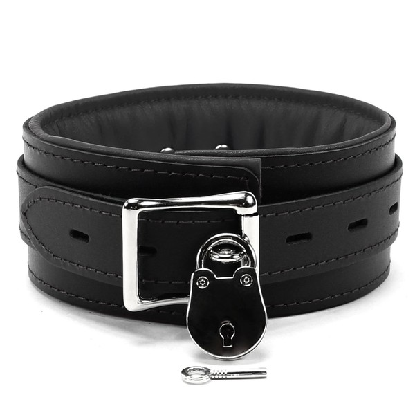 Macon Collar Supreme Lambskin Leather Ultra Soft Padded Choker (Black, Large)
