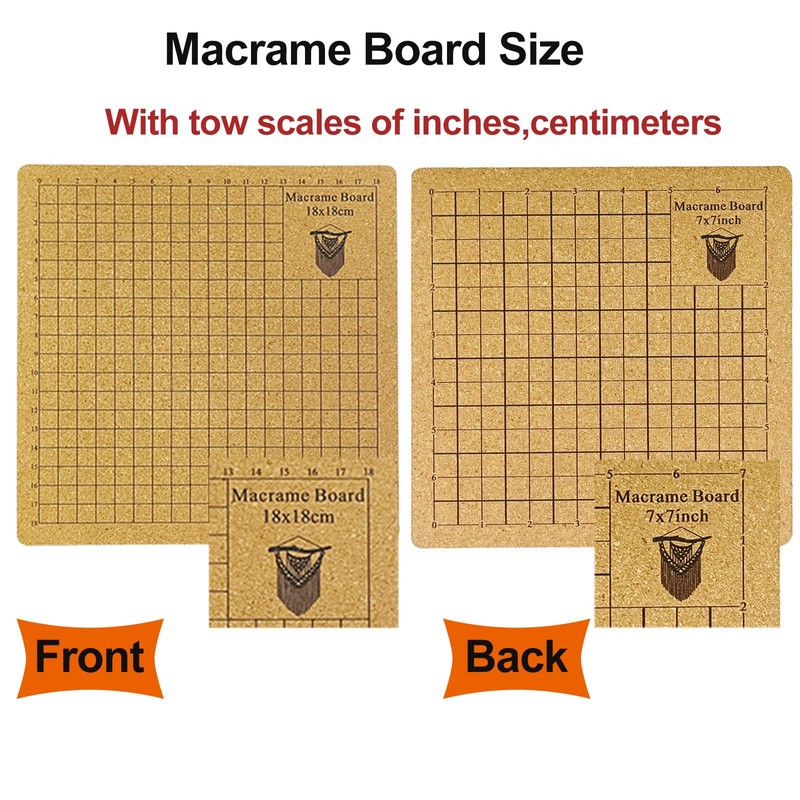 - Macrame Board: Made of cork material, size of 18x18cm.there are evenly distributed squares on the macrame board.these squares can provide clear coordinate references for weavers,making it convenient to determine the positions and spacings of knots and helping to create neat and regular patterns.