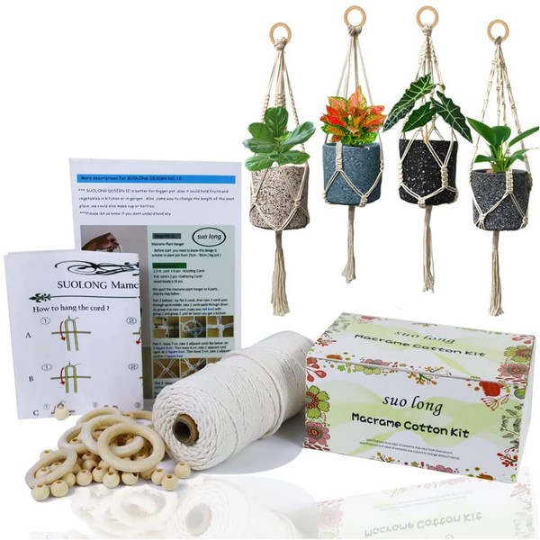 - 【Macrame Kit with Gift Pakage 】: suo long macrame DIY kit come with SUOLONG gift package box, will be great gift for women ,kids ,parents ,craft kits for adults