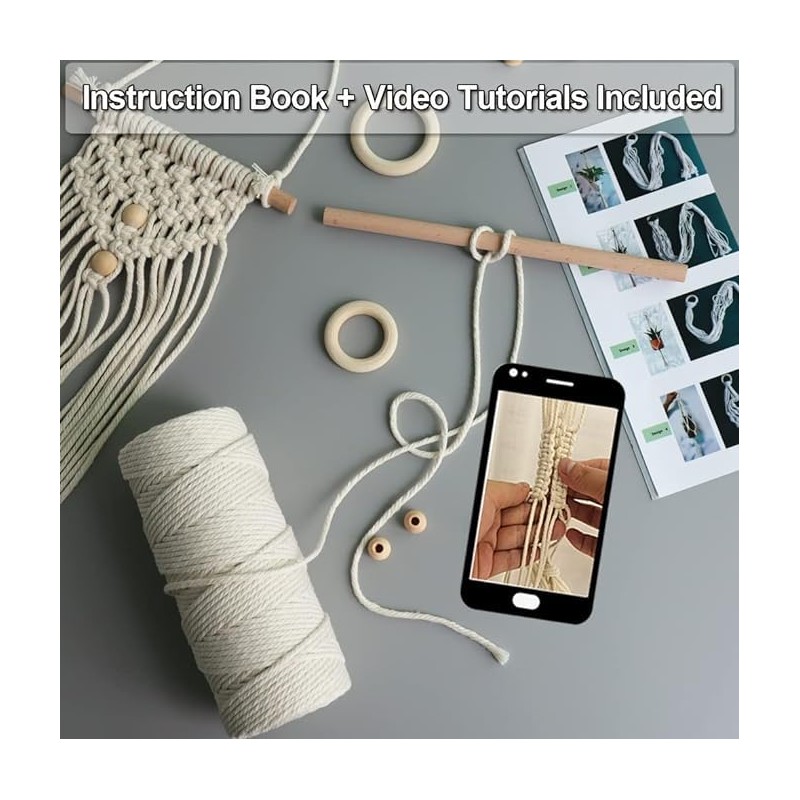 Macrame Kit for Beginners Adults with Tutorial Macrame Plant Hangers Kit Contain Macrame Supplies 3mm Macrame Cord Wooden Rings Macrame Wooden Beads Wooden Dowel for Macrame Wall Hanging Macrame Kits
