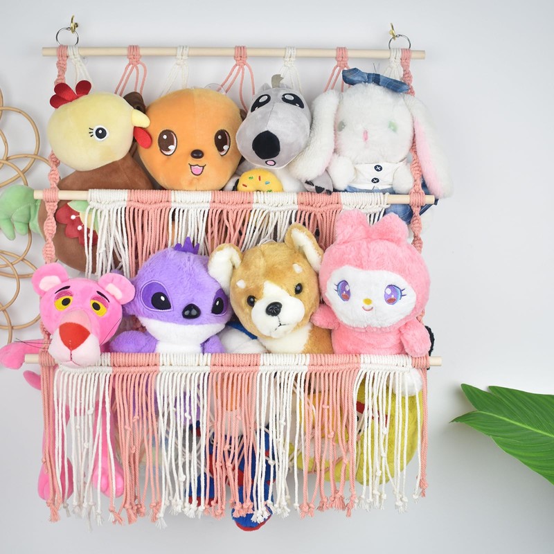 - Functional Storage: This mesh pocket organizer provides a stylish and practical way to store and display stuffed animals, plush toys, or other small items in a child's room.