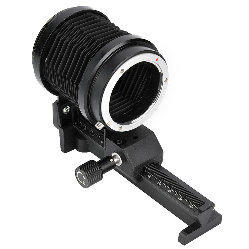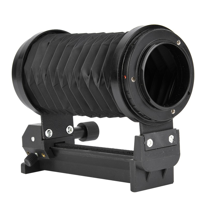 1、The macro close-up bellow is an accessory connected between the camera body and the camera lens. 2、Stretch the distance between your lens and film to provides high quality close up images for you. 3、With an accordion section to inserted between the lens and the camera body. 4、Be used with tripod, good stability, easy to use, so that you can steadily adjust the distance to the object to be photographed. 5、Straight grain and gear focusing rail track, smooth focusing with locking knob.