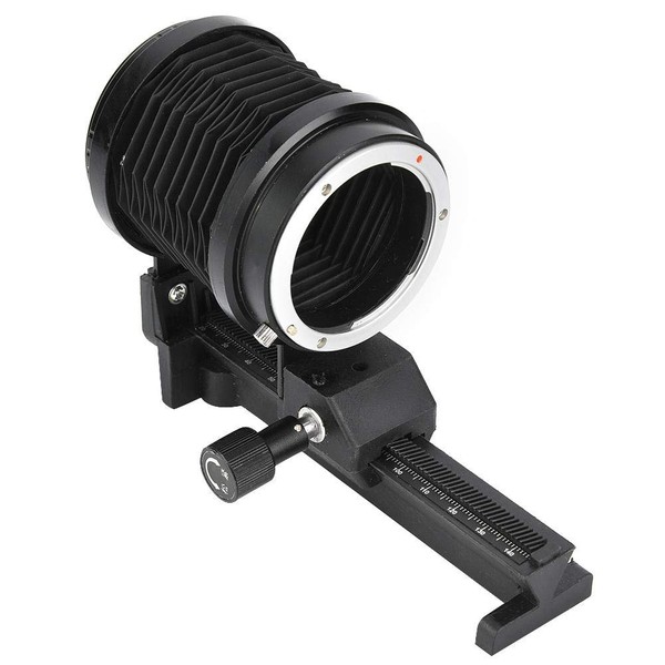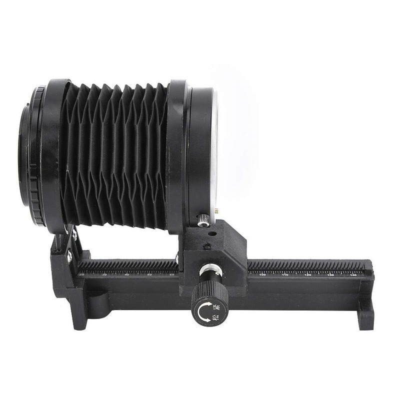The macro close-up bellow is an accessory connected between the camera body and the camera lens. Stretch the distance between your lens and film to provides high quality close up images for you. With an accordion section to inserted between the lens and the camera body. Be used with tripod, good stability, easy to use, so that you can steadily adjust the distance to the object to be photographed. Straight grain and gear focusing rail track, smooth focusing with locking knob.