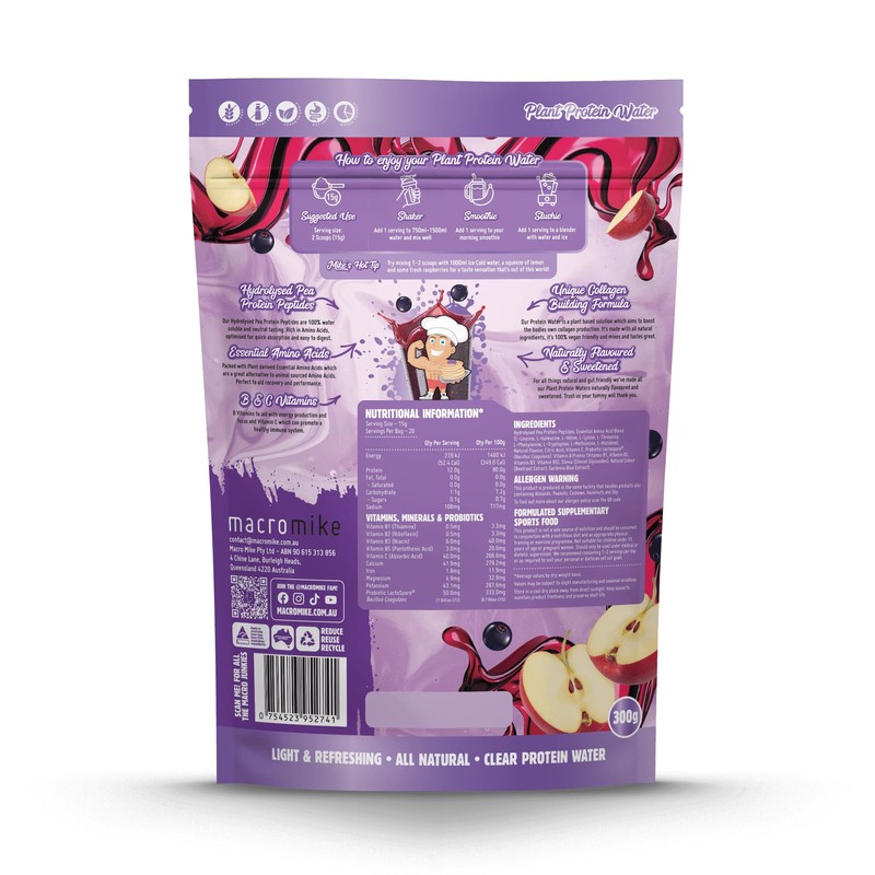 Macro Mike Apple Blackcurrant Plant Protein Water 300 g