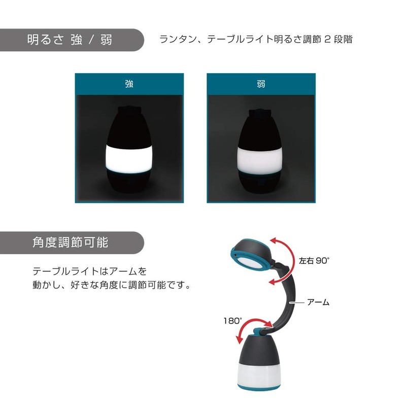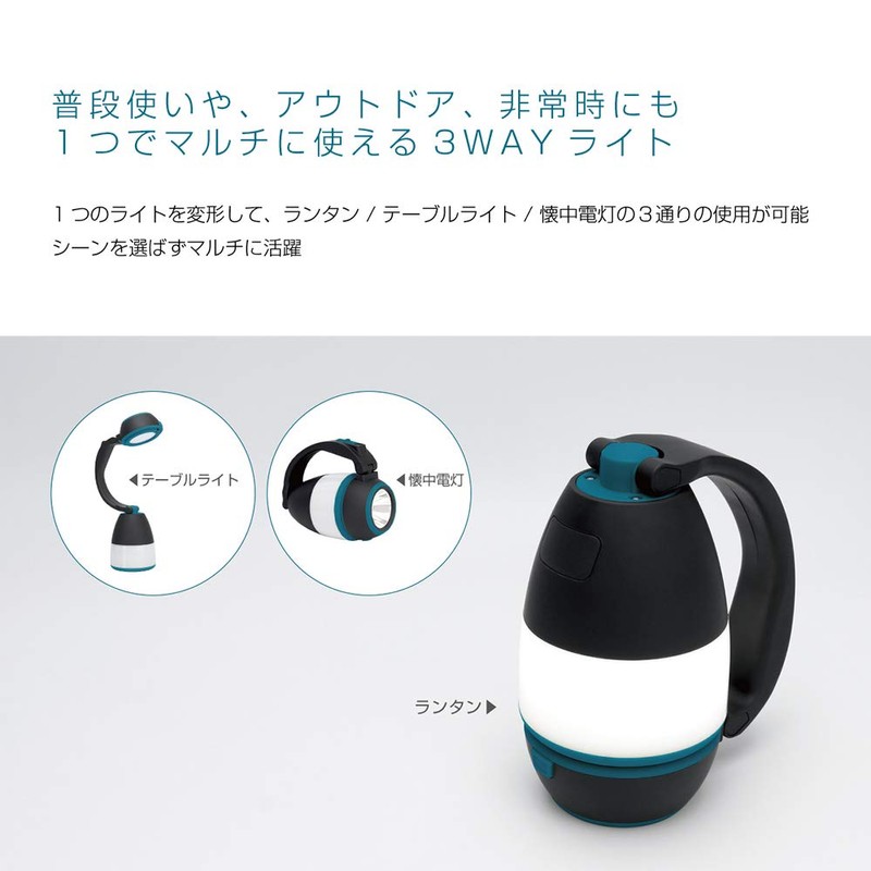 - ランタン/テーブルライト/懐中電灯 3パターンの使用が可能なライト 普段使いやアウトドア、非常時にも活躍
