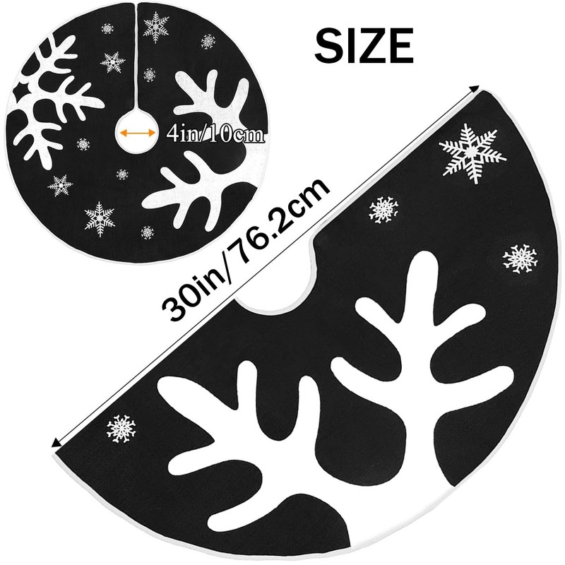 - Christmas tree skirt for home decor: this black linen Christmas tree skirt is decorated with elegant snowflakes and stylish antlers, perfect for your Christmas decoration.