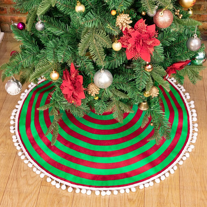 - Easy to Assemble: Red and green circles tree skirt is comes with invisible velcro. It can allow you to fit quickly and simply around the base of Christmas tree, easy to hide nude Christmas tree stand.
