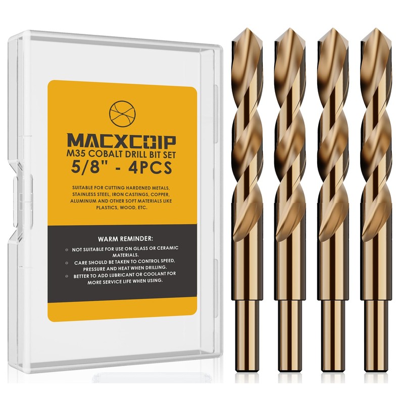 MACXCOIP 5/8" (4pcs) Cobalt Drill Bit Set, M35 High Speed Steel Jobber Length...