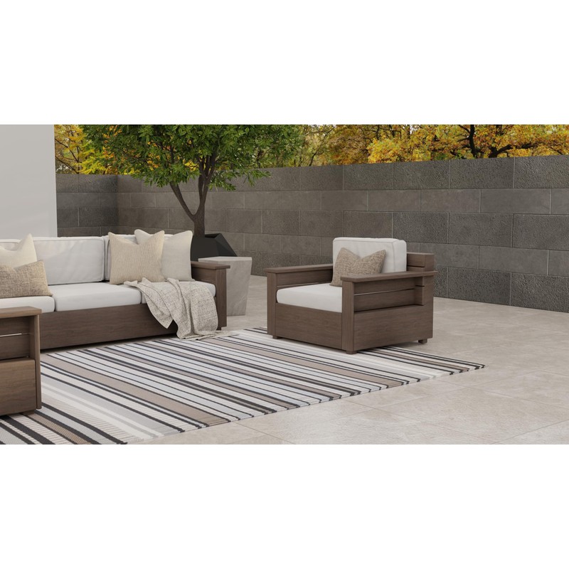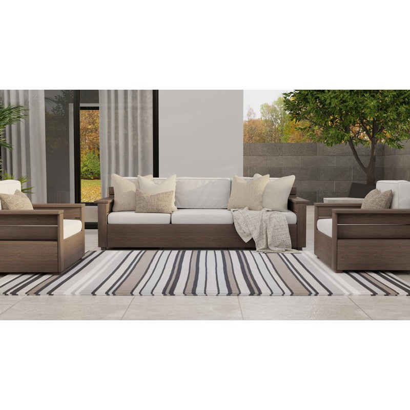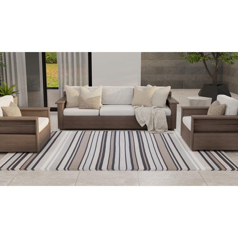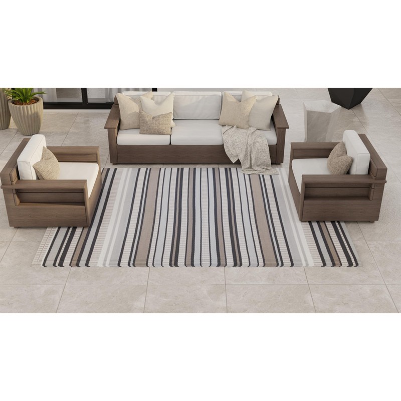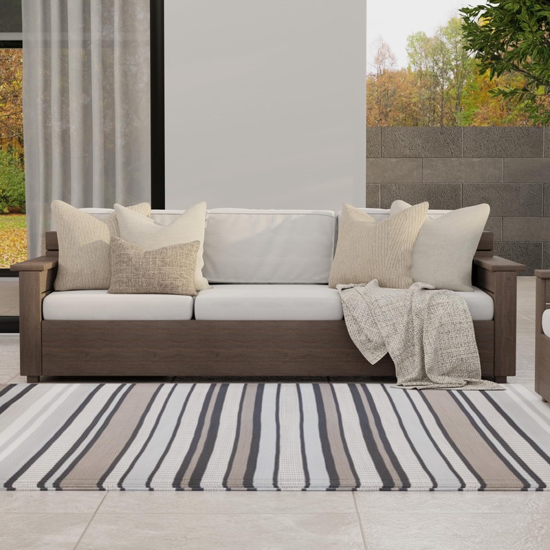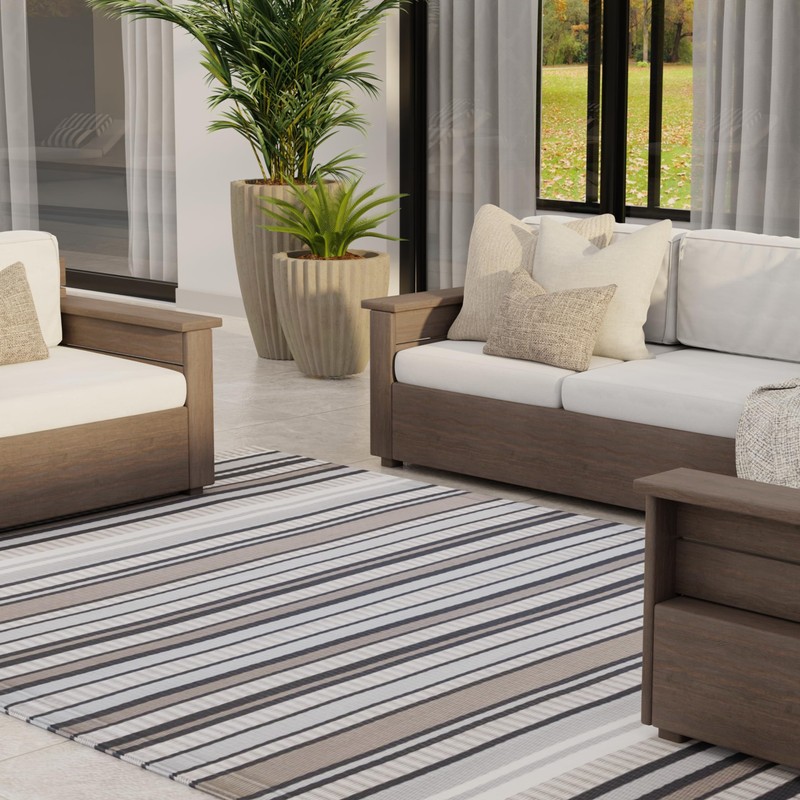 Mad Mats Geometric Outdoor Rug, Reversible Plastic Mat (5' x 8', Stripes - Cool Grey)