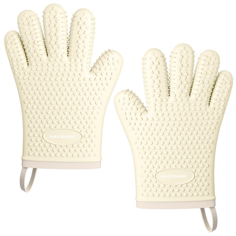 - LOVE THE DURABILITY OF SILICONE OVEN GLOVES: Unlike the big bulky cloth oven mitts that catch fire and only allow a claw hand movement. MAD SHARK silicone oven mitts pair high heat are very flexible and it's easy to grasp things without feeling like there's bulk inhibiting your grip, they are not clumsy at all! No longer must you be at risk of ruining a pie because for the love of all that is good in the world you just cannot get a grip on the dish!