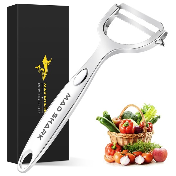 MAD SHARK Ultra Sharp Peeler for the Kitchen - 10 Years Rustproof Stainless Steel Potato Peeler Simple Y Peeler with Durable, Non-Slip and Ergonomic Handles for Carrots (Silver)