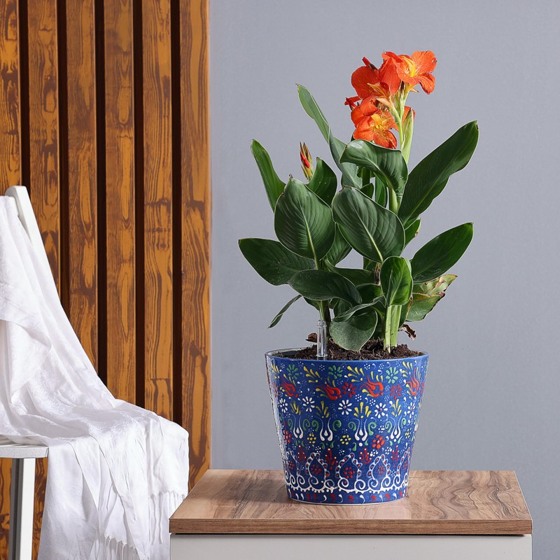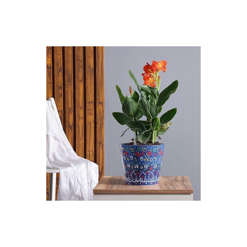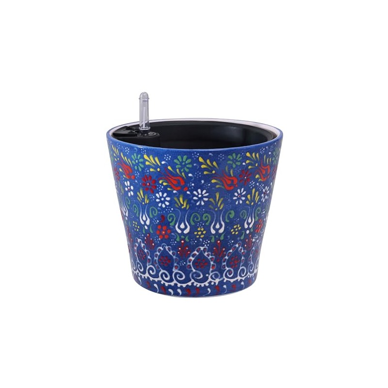 Madam Sophia Concept Handmade Ceramic Self-Watering Flower Pot 8-inch Unique Floral Design (Blue)