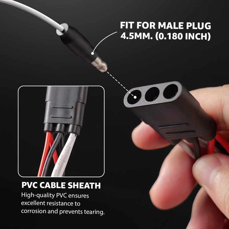 - ★ Fitment: These 3-prong wire harness roll fits for any Lights that require a 3 pin plug: 0.180” female bullet type plug.