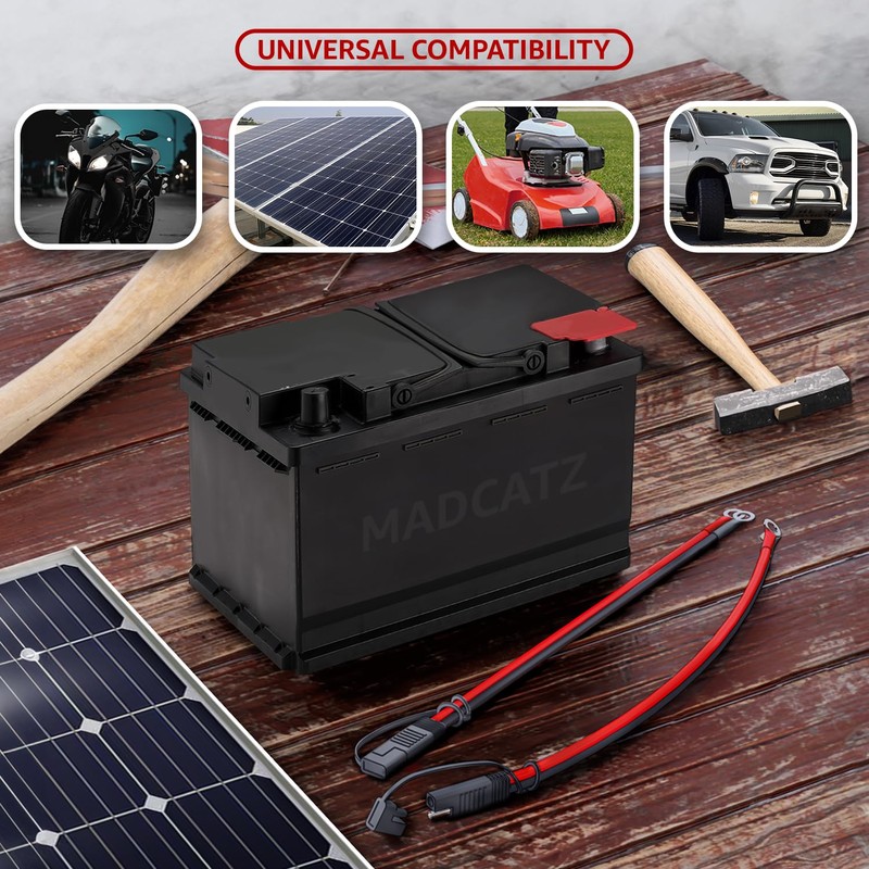 - QUICKENING INSTALLATION: Simply connect the Madcats's ring leads to the battery terminal and then connect your standard battery charger or a maintainer with the SAE quick-connect harness.