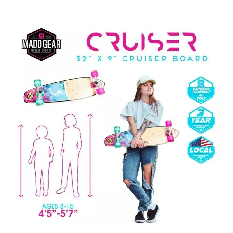 Madd Gear New Madd Gear 32"x9" 8 Ply Maple Complete Cruiser Board Skateboard Zodiac