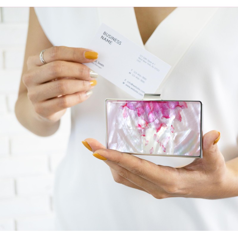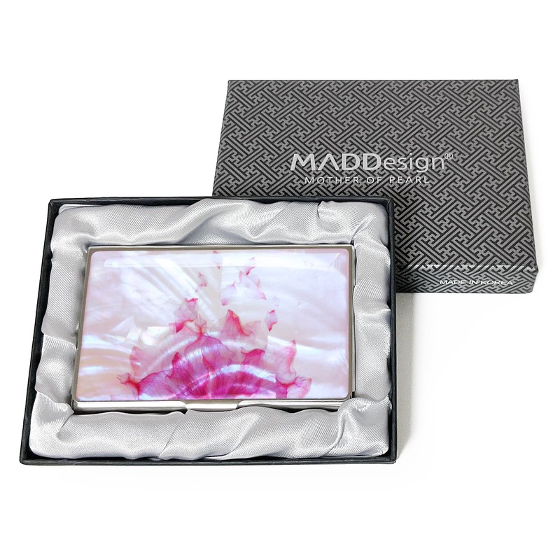 MADDesign Mother of Pearl Business Card Case Carrier Holder Wallet (Flower Pink)
