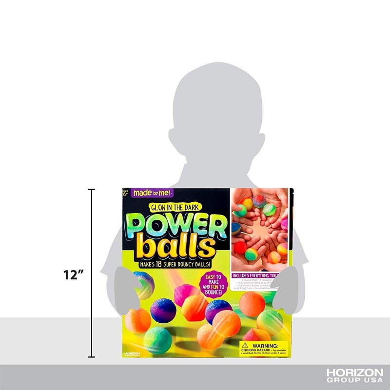 Made By Me Glow The Dark Powerballs by Horizon Group USA, DIY STEM Kit. Make 18 Bouncy Crystal Power Balls, Molds and Instructions Included,Multicolored