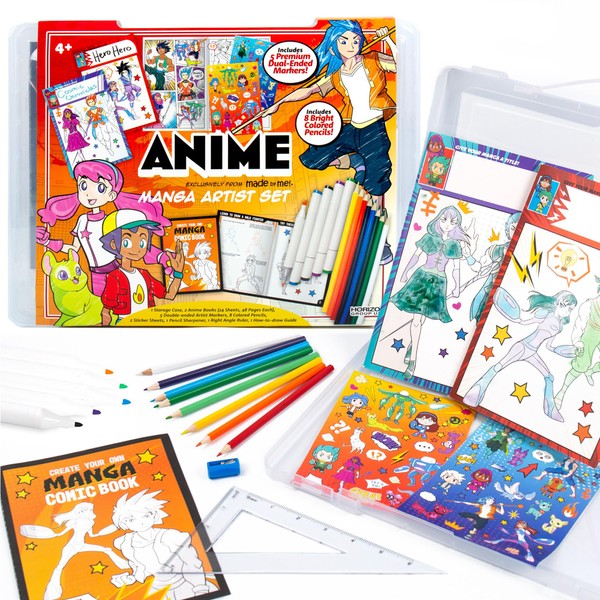 Made By Me Manga Artist Set - How to Draw Anime & Create 2 Comic Books - Great Gifts for Anime Enthusiasts - Awesome Art Kit for Kids