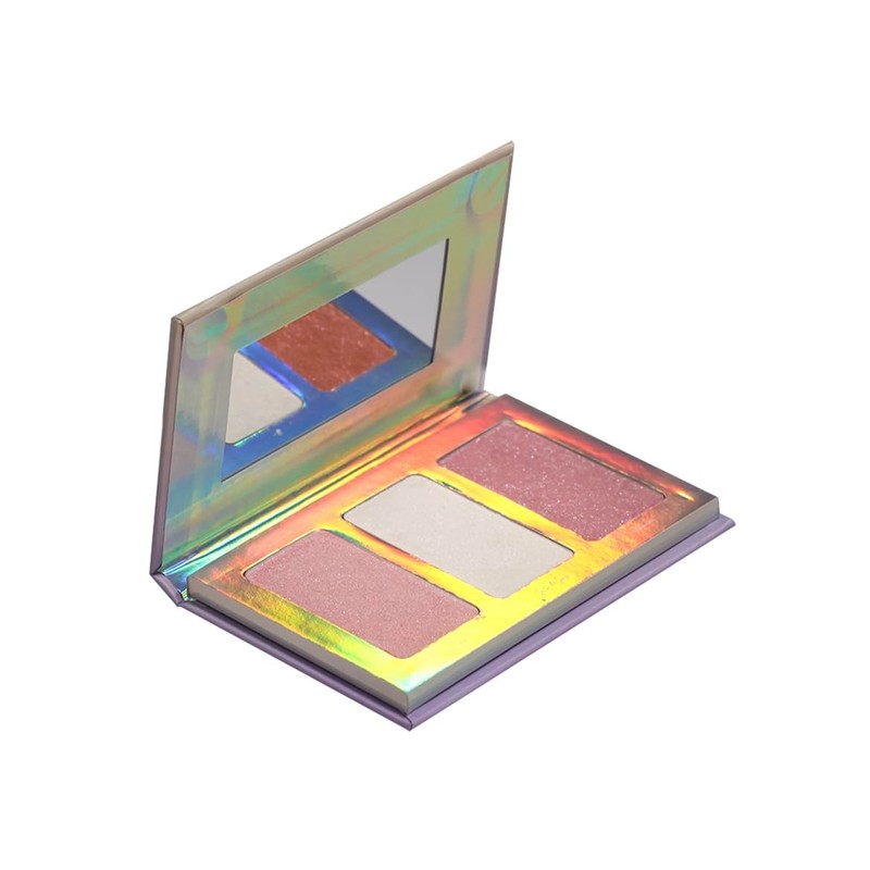 • LUXURIOUS PALETTE: Three stunning highlighter shades housed in a holographic compact