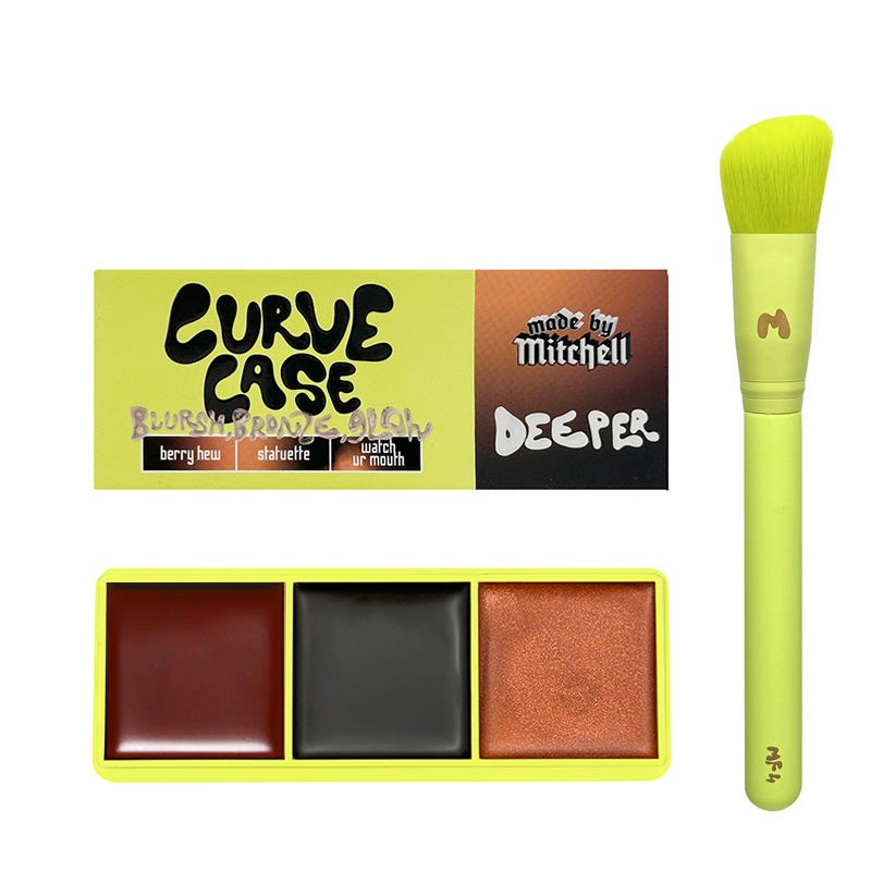Mini Curve Case Blursh, Bronze, Glow Face Palette & Brush in Deeper by Made By Mitchell