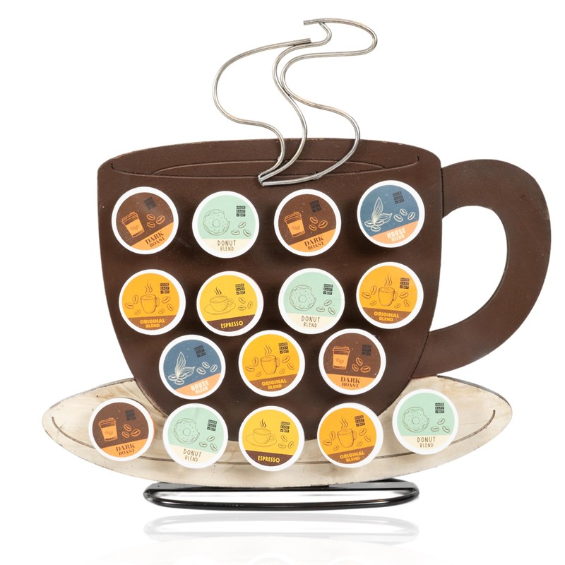 Made Easy Kit Front Facing Countertop Coffee Pods Holder - Compatible with K-Cups Practical meets Whimsical - Coffee Bar Decor for Home Café Kitchen Nook (Brown Coffee Cup)