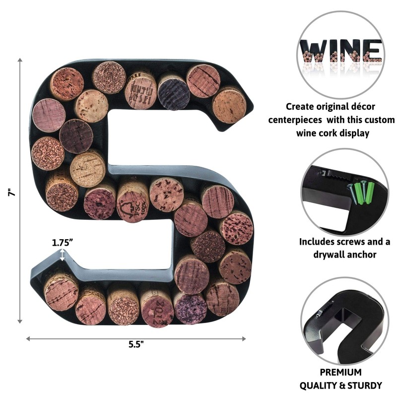 - EASY INSTALLATION: This personalized letter shaped decorative monogram holder for corks includes screws and a drywall anchor, being easy to install without the hassle of professional help. Two height options for the letters your choice of 12" or 7"