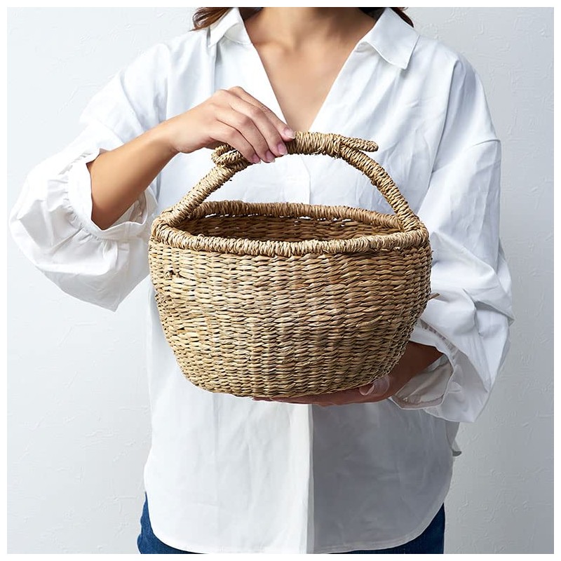 Made In Basket Hamper Handles Seagrass Storage puranta-kaba- Bali Sundries Asian Sundries Seaweed 水草 Natural Materials