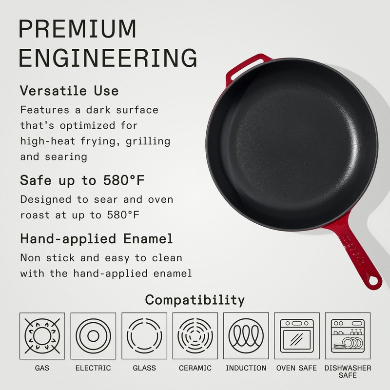 • Timeless Craftsmanship - Built with generations of expertise, the perfected cast iron to enamel ratio ensures the durability of an heirloom-quality Enameled Cast Iron Skillet