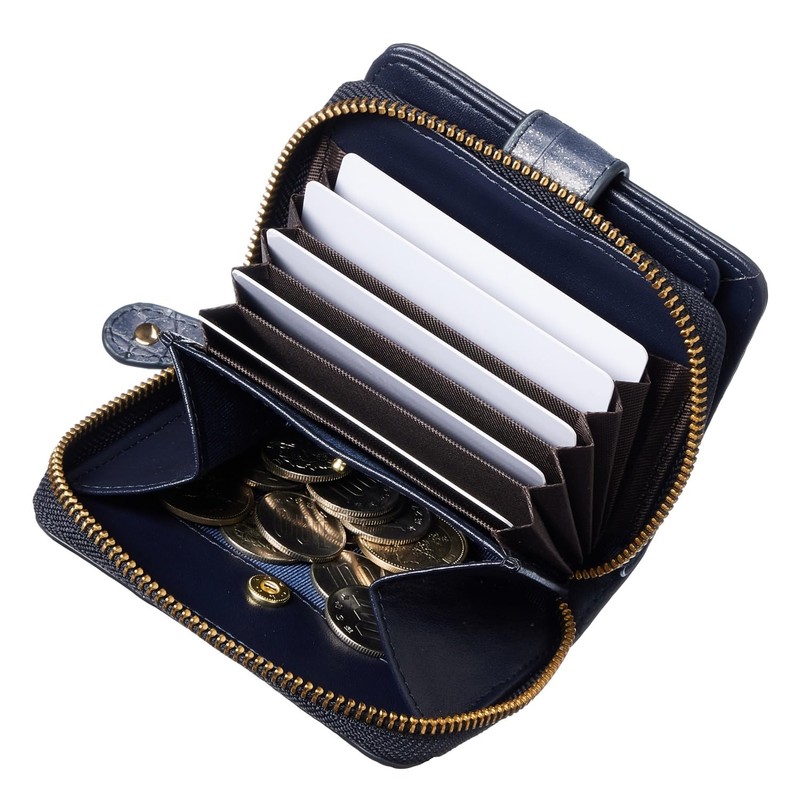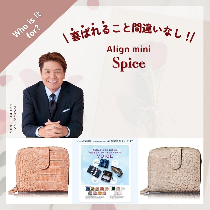 [Made in Italy, Cowhide Leather Spice] Women's Bi-fold "Looks Mini Wallet, Inside is a Long Wallet" Anan Published Product, Beautiful, Glitter, Crocodile Embossed Mother's Day, Present, Gift Boxed,
