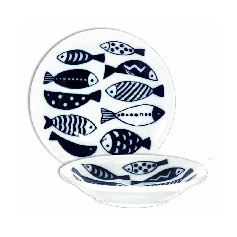Made in Japan 2 PCS. Japanese 4"D Porcelain Wasabi Soy Sauce Dishes SAKANA Fish Made in Japan