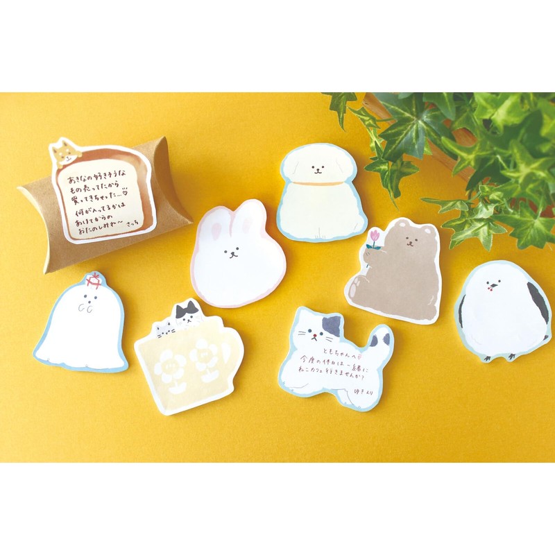 Die-cut sticky notes featuring wonderful things that brighten up your life are now available in new patterns! We have prepared 8 types with designs that are easy to write and will make you want to send a message. With a cute animal-shaped design, this item can be used as a cute addition to memos and messages. - Origin: Japan / Material: Paper / Size: Within 70×70mm