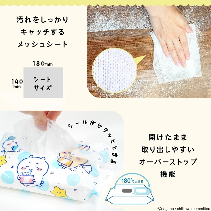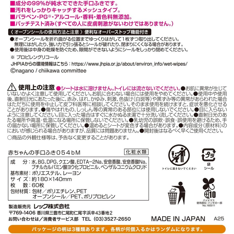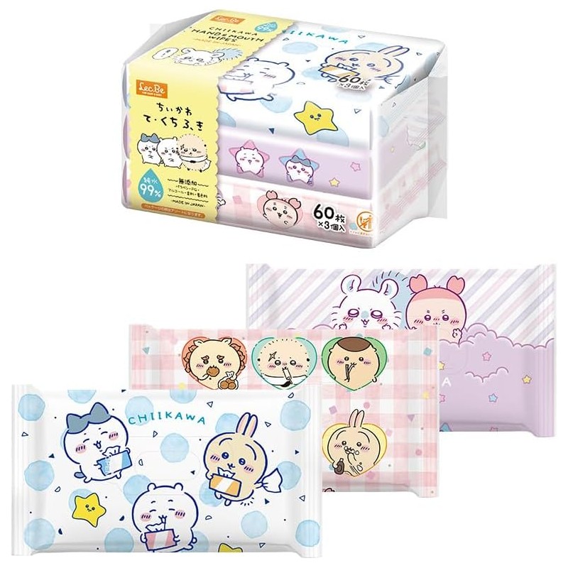 Chiikawa 99% Pure Water, 60 Sheets x 3 Pieces, Mesh Processing for Removing Dirt, Additive-Free, Made in Japan, Chiikawa, Hachiware, Rabbit 3 Patterns Random Assortment