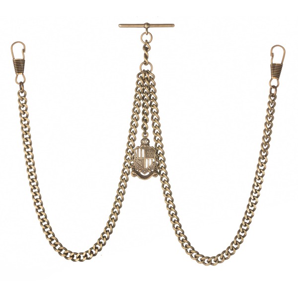 Made in The UK Elegant Bronze Colour Double Albert Pocket Watch Chain with Shield Pendant (10")