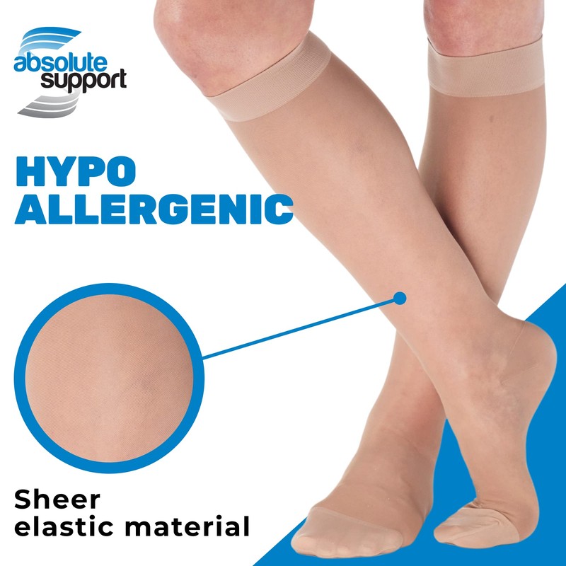 15-20 Mmhg Moderate Pressure, Common Starting Point For First Time Wear - Compression Strength For Minor Conditions. Below Knee Length, Closed-toe, Fashionable Sheer Style For Women; Lightweight Breathable Denier Fabric Resembles Dress Nylon Hosiery, Adds Shimmer And Sheen To Skin Tones; Roomy Closed Toe Pocket Will Not Compress Toes For Increased Comfort. Recommended For : Minor Varicose Veins, Minor Spider Veins, Edema, Dvt, Post-surgery, Swelling In Ankles Calf Feet, Enlarged Bulging Veins, Pregnant Nursing Expecting Mothers (when Recommended By A Doctor), Travel (prevents Blood Pooling And Clots In Frequent Flyers), Tired Aching Legs, Muscle Recovery Post Cardio Workout And Exercise. Beauty Shaping And Leg Contouring. Wide Soft-top Band Prevents Rolling, Knit Heel Pocket Keeps Garment In Place; Graduated Compression Distributes A Therapeutic Massaging Pressure Gradient Up The Leg; Consult Your Physician For The Appropriate Level Of Compression. Moderate Strength 15-20 Mmhg Support For Mild Conditions; Shaping And Control To Smooth Skin And Figure; Commonly Used As The Starting Point For Everyday Wear, Travel, Leg Health, Prolonged Sitting Or Standing, Increased Blood Flow, Energy, And Recovery. Medical Application And Treatment For Minor Swelling, Aching, Discomfort In Ankle Legs And Feet; Minor Varicose Veins, Early Spider Veins, Enlarged Bulging Veins, Edema, Post Surgery, Varicosities During Pregnancy, Heavy Achy Legs, Tired Sore Leg Muscles. Features & Benefits Fashionable Sheer Knit - 20 Denier Dress Nylon Hose For Casual, Business, Or Formal Wear. Stay-up Top - Lined With Silicone Grip Ensures Stocking Remains In Place Throughout The Day. Knit-in Heel - Defined, Reinforced Heel Pocket Adds Durability And Provides Orientation For Anatomical Fit. Comfort Toe - Roomy Closed Toe Box Will Not Compress Toes And Eliminates Pressure And Chaffing On Sensitive Feet.