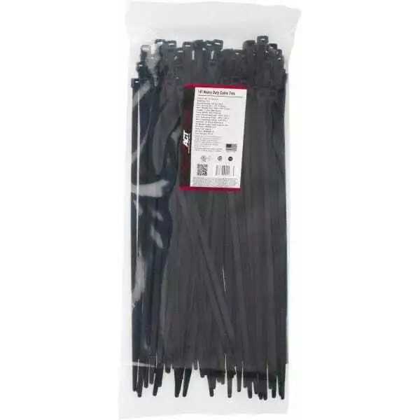 Made in USA (100 Count) 14" Black Nylon Standard Cable Ties, 120 Lb Tensile Strength