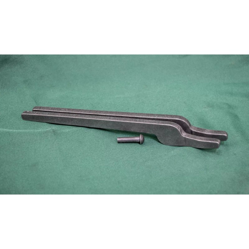Rapid Scroll Tongs are smaller with a tapered jaw that are generally used in scrolling or detail size also makes them versatile for many other applications. Rapid Scroll Tong blanks are made from 5/16" thick mild steel. The jaws are 1-5/8" long and the reins are 6-3/8" long. Includes a 1/4" x 1" rivet.