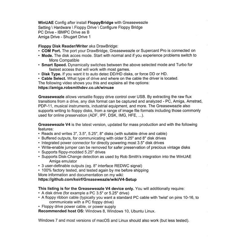 This listing is for the Greaseweazle V4 device only. You will additionally require: