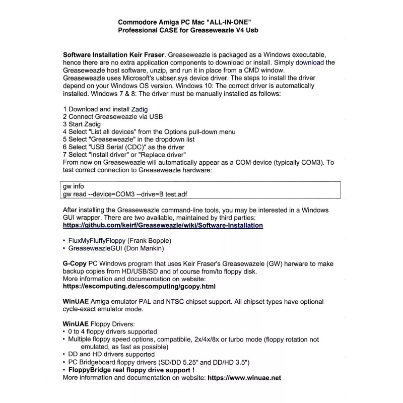 - Model: Bracket for Greaseweazle Commodore Amiga PC