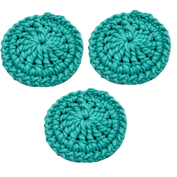 Made in USA Dish Scrubbies Pack of 3 Non Scratch Nylon Soft and Sturdy for Pots, Frying Pans, Dishes, Stove Tops, Vegetables (Aqua)