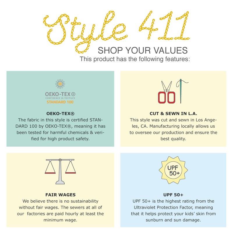 Kids will enjoy this super-comfortable swimming rashguard while parents will love the high-quality fabric, SPF/UPF 50+ protection, and Made in the USA tag. The subtle but cool contrast stitching creates a stylish modern design.