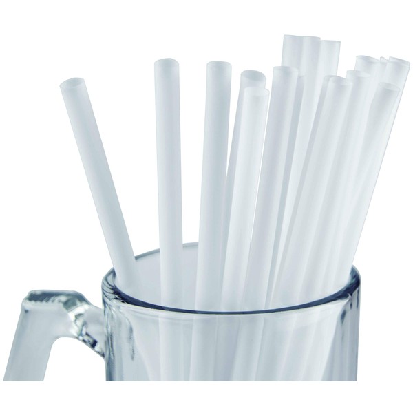 - Pack of 250 Jumbo White Smoothie Straws that are 10” long and have a diameter of 0.28”. Each straw comes individually wrapped in white paper wrapping.