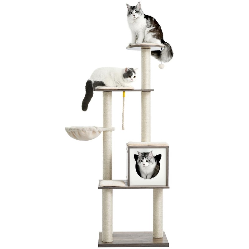 - Multi-Level Activity Center—Standing at 65.6", this vertical cat tree tower features multiple platforms, a cozy hammock, a spacious condo, and a top perch—perfect for lounging, birdwatching, and leaping between levels. An ideal cat tower for multi-cat households looking to provide both enrichment and comfort.