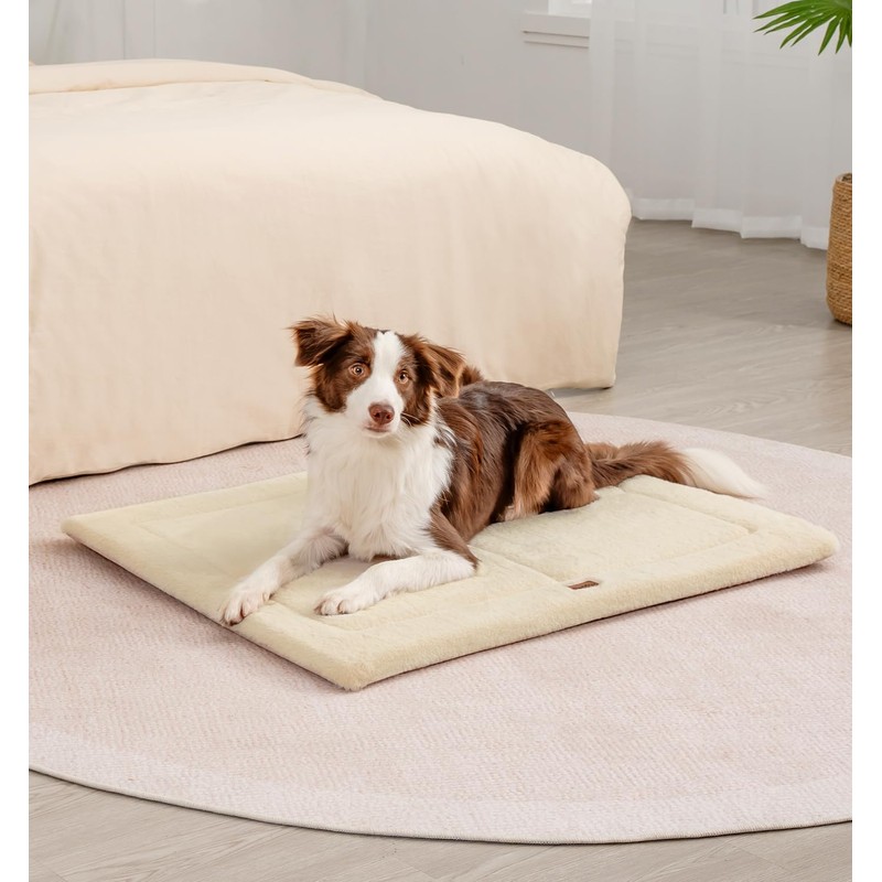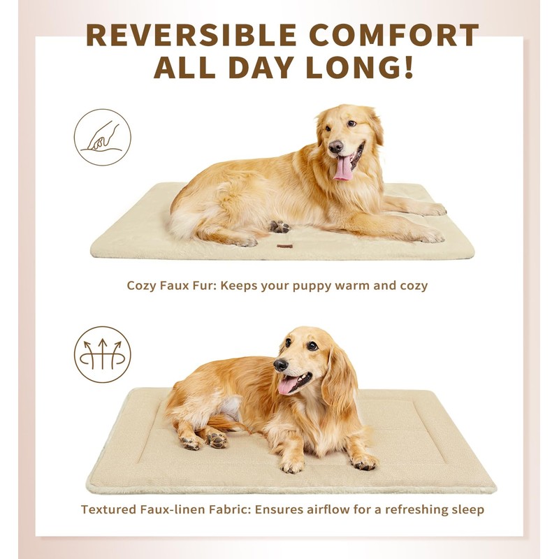 Made4Pets Dog Crate Pad Bed for Large Dogs, Washable & Reversible, Anti-Slip Kennel Mat for Cozy Sleeping, Soft Fluffy Dog Bed for Indoor & Outdoor Use, 41"x29", Beige