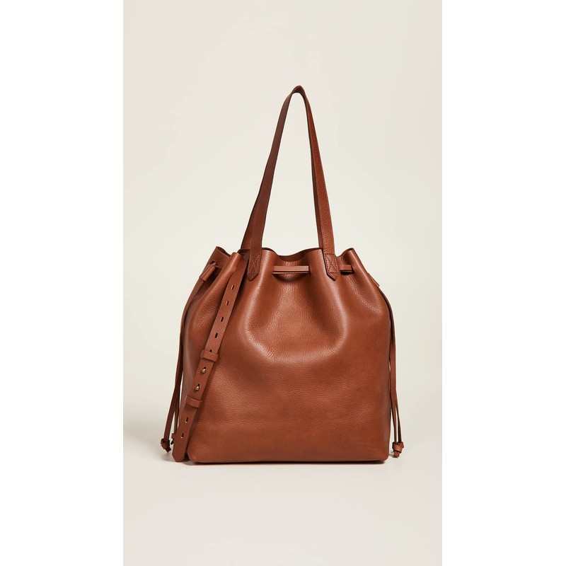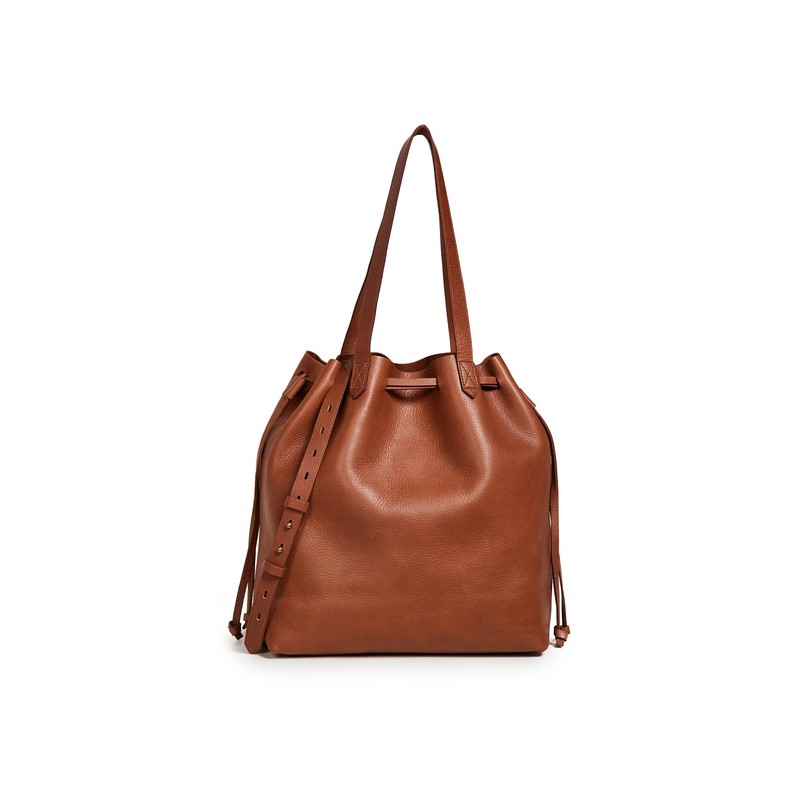 - A polished and pristine style you'll want to wear daily, the supple leather Madewell The Drawstring Transport Tote with carrying handles.