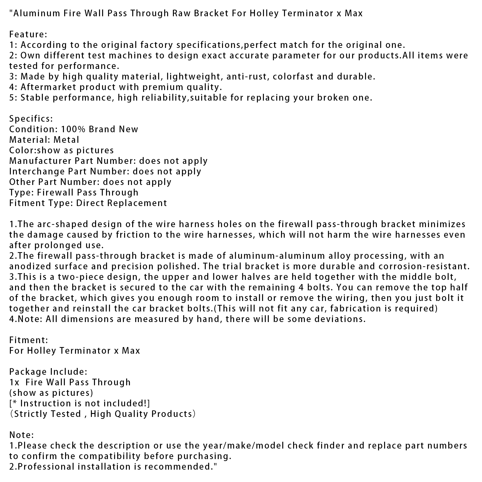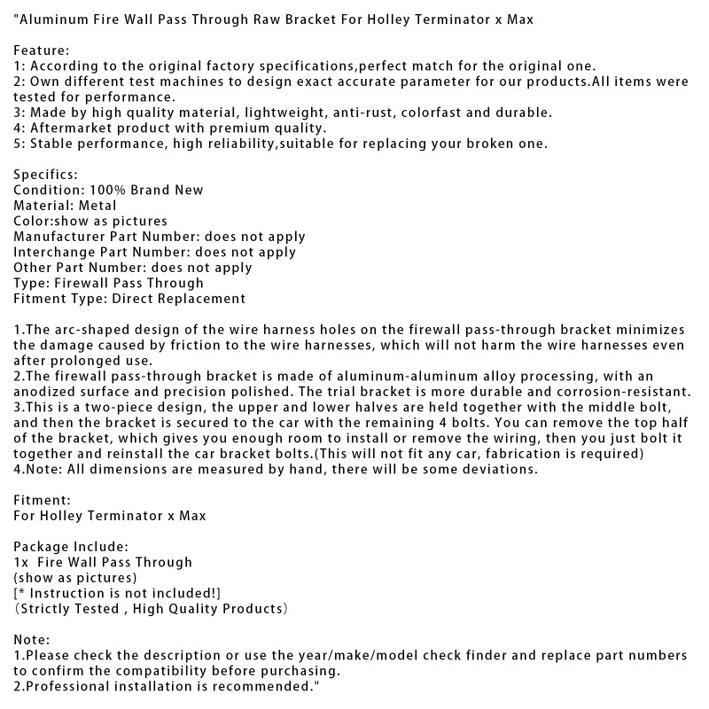 MadHornets Aluminum Fire Wall Pass Through Raw Bracket For Holley Terminator x Max US